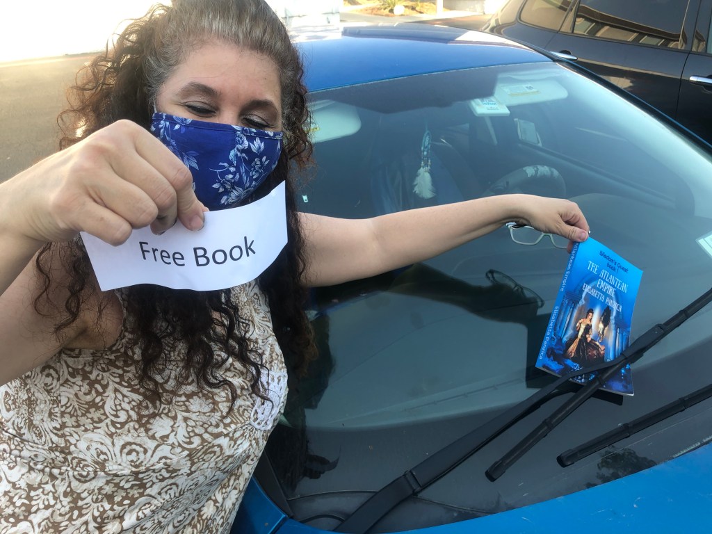 I found a creative way to advertise and interact with readers, it was a long and rewarding day. One woman was so happy to have gotten the book, she acted like she had just won the lottery, oh my gosh! It was great! I told her it was autographed and she was so grateful. Well, maybe I’ll do this again sometime.